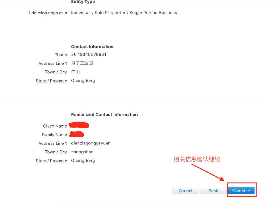 此处姓名更好与购买者身份证上的一致,因为后面付款成功后,苹果还会要求上传身份证正反面照片进行核对,如果不一致还需要修改姓名再次上传证件信息。