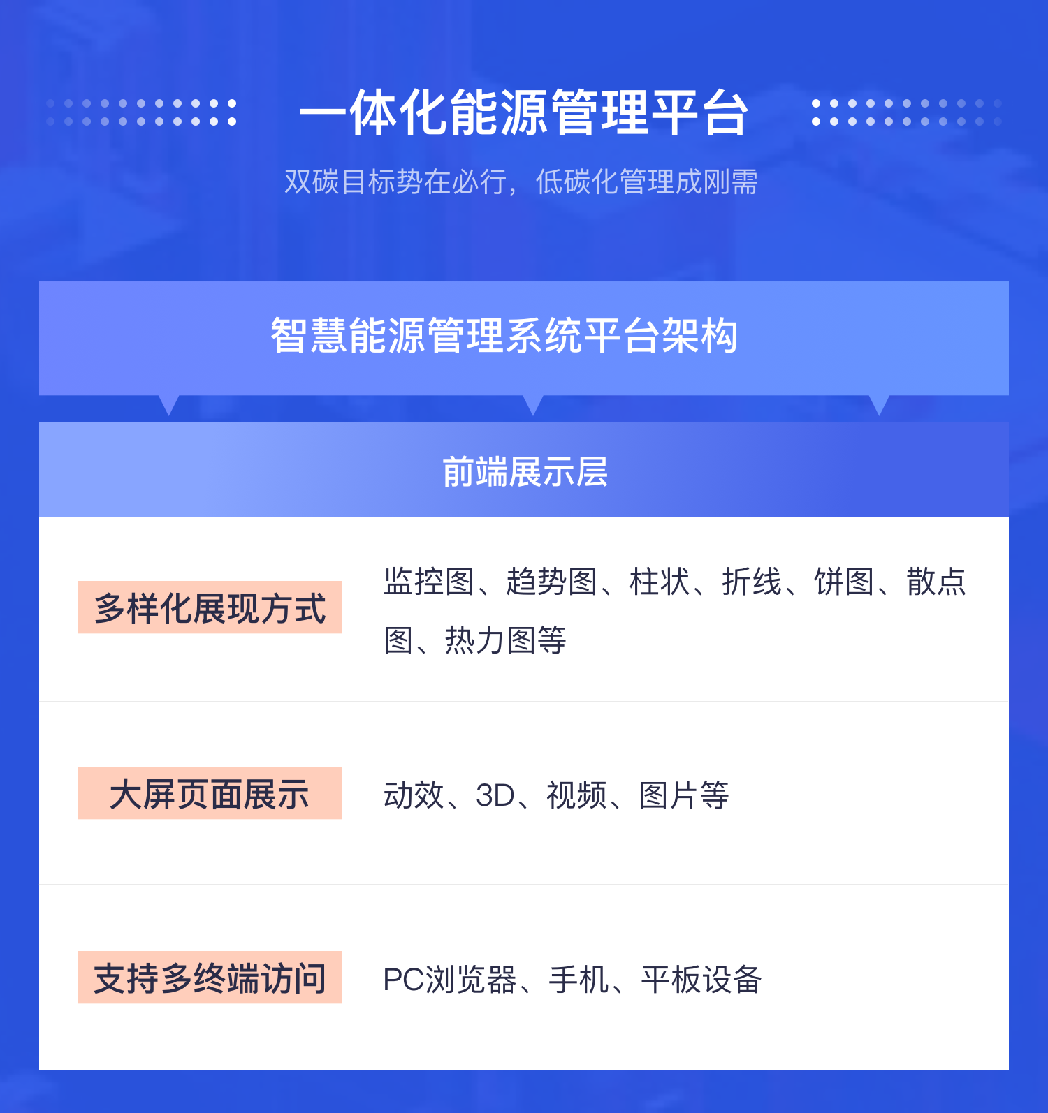 采用微服务架构快速部署,保障数据安全及可扩展性,便于接入外部系统,建立一体化能源碳管理系统。