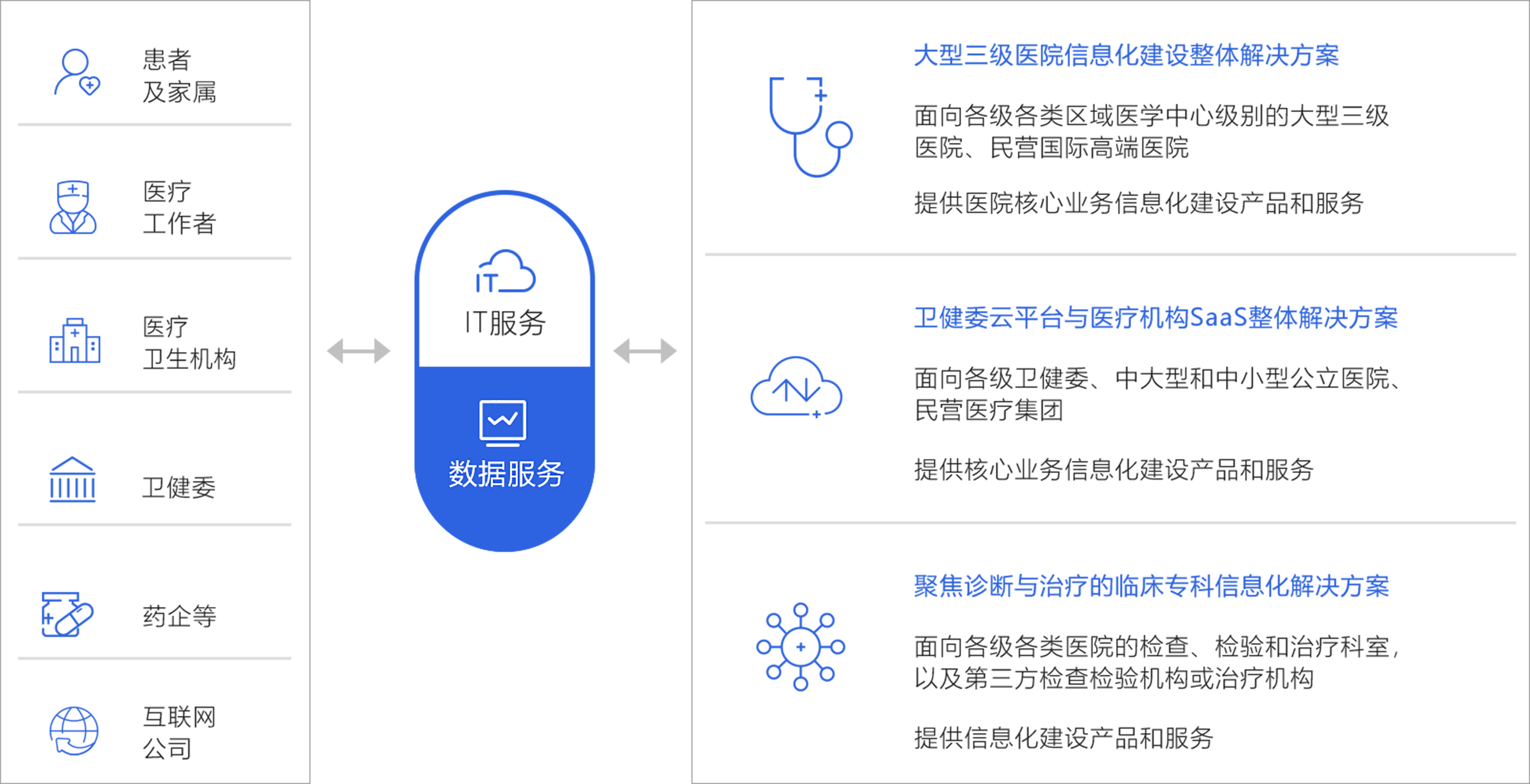 面向各级卫健委、中大型和中小型公立医院、 民营医疗集团